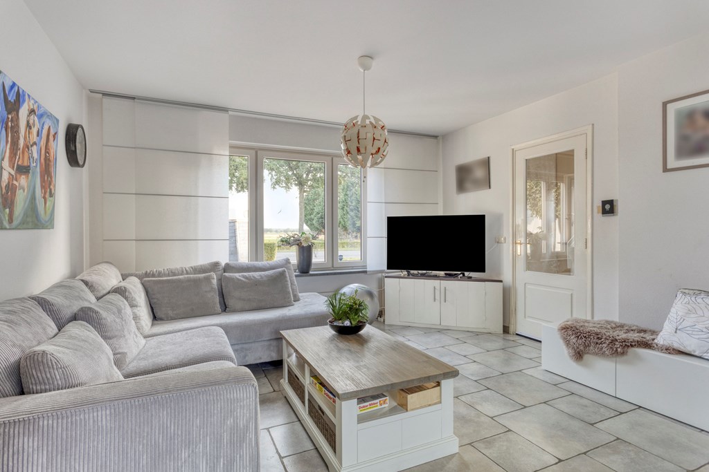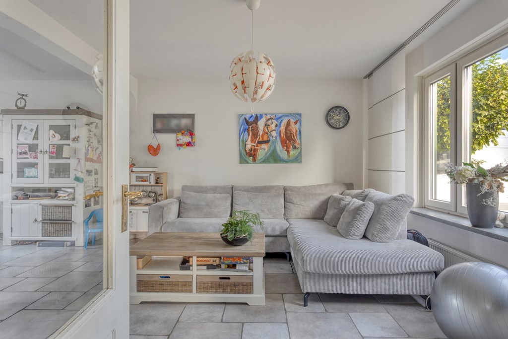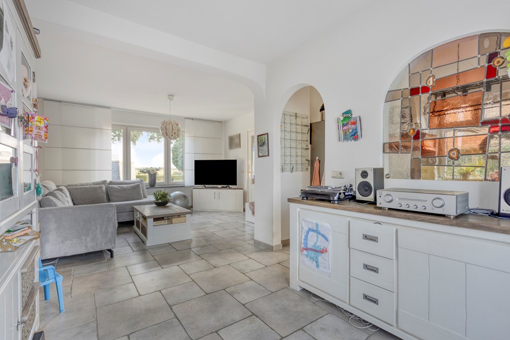 • Sfeervolle woonkamer met plavuizenvloer, vloerverwarming en prettig veel lichtinval.