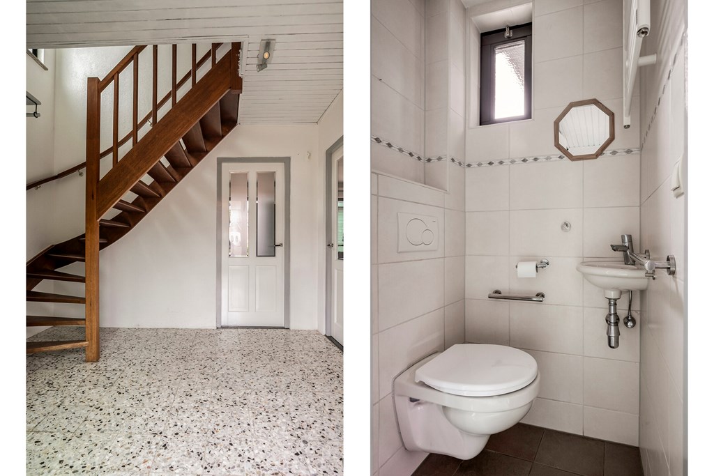 • Entree/hal met meterkast, trapopgang en toiletruimte met fonteintje