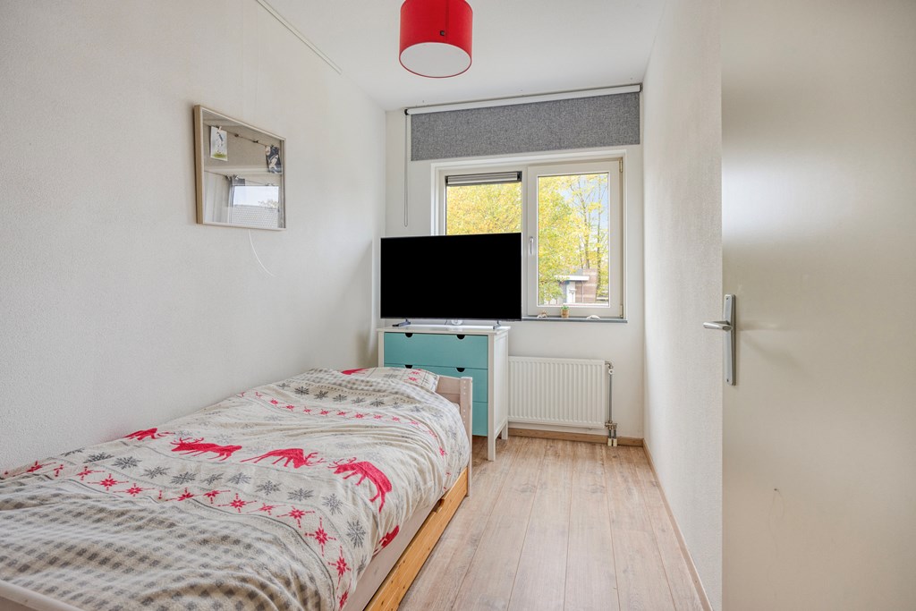 Vanaf de overloop bereik je drie ruime, keurig afgewerkte slaapkamers, allen voorzien van kunststof kozijnen met HR++ glas.